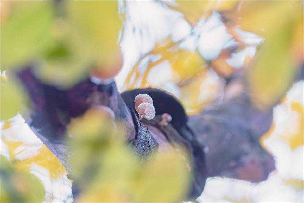 Nachdem der Oktober fotografisch fast völlig ins Wasser gefallen ist, musste ich an diesem Wochenende endlich mal wieder mit der Kamera raus. Die Bäume waren voll mit diesen hübschen kleinen Buchenschleimrüblingen (Pilze haben ja oft lustige Namen). Eigentlich fotografiere ich eher selten Pilze, aber wenn sie schon so praktisch auf dem Baum stehen und man sich noch nicht einmal für ein Foto in den Matsch legen muss, habe ich mich eine ganze Weile mit ihnen beschäftigt. Dabei wurde ich dann auch noch beobachtet.